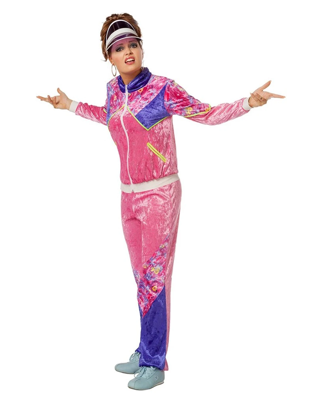 Die nächste 80er Jahre Party kann kommen. Du ziehst Dein stilechtes 80s Trainingsanzug Damen Kostüm an und bist der Blickfang Nummer eins auf der Tanzfläche. Während Ihr zu „Girls just wanna have fun“ Spaß habt, schimmerst Du in Pink und Lila. Als wärst Du direkt aus der Zeit der Schulterpolster und Neon-Armbänder in den hiesigen Fasching gereist. Ein bisschen schräg, und ein bisschen cool, Dein 80s Style rockt Du nicht nur die 80ies Motto Party. Damit bist Du auch an Karneval oder auf dem Bad Taste Event als ein echter Hit.