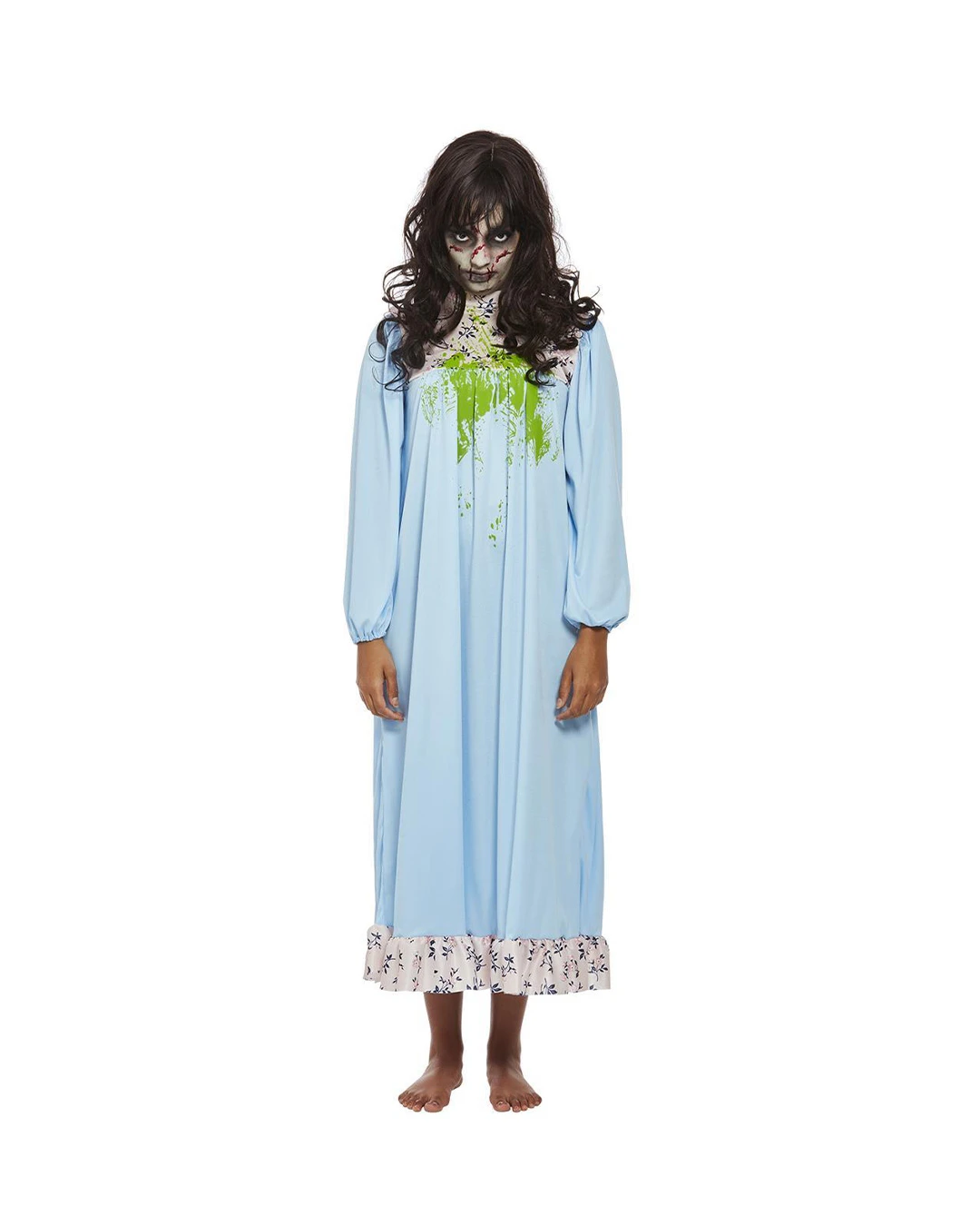 William Peter Blatty, löste mit seinem 1973 erschaffene Horrorfilm „Der Exorzist“ weltweit Begeisterung aus. Die Story um ein vom Dämon besessenes Mädchen ist der Stoff aus dem Alpträume gesponnen werden. Vor allem die grotesken Szenen mit der besessenen Megan sorgen beim Zuschauer für Gänsehaut. In Anlehnung an den Horror-Schocker bekommst du unser Besessenes Mädchen Damenkostüm in Form eines Nachthemdes mit einem Fleck Erbrochenem. Die eklige Halloween Verkleidung für Frauen ist ideal, um dich am 31. Oktober einem Exorzismus zu unterziehen!
