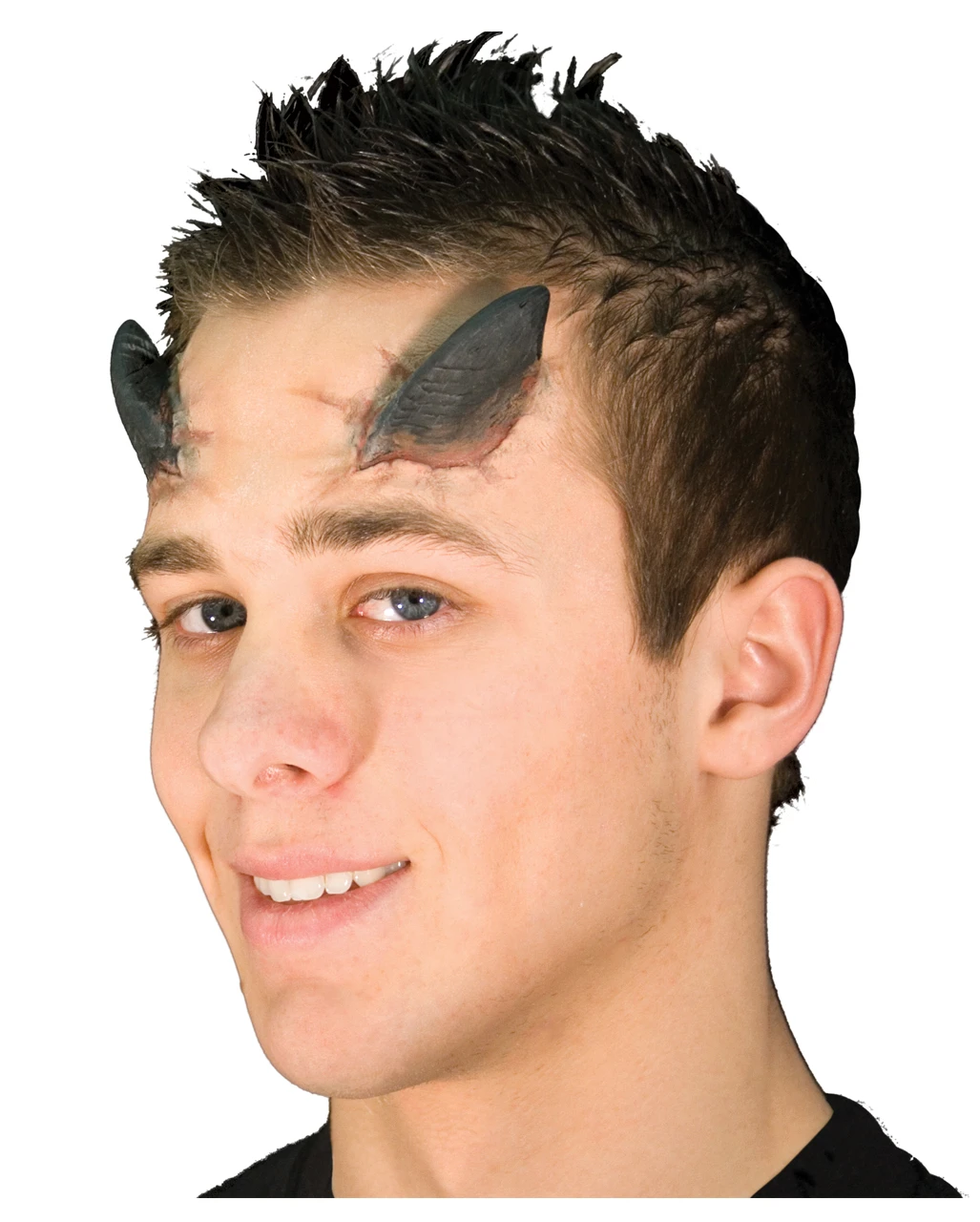 Realistisch aussehende, schwarze Dämonen-Hörner aus Latex zum Aufkleben auf die Haut