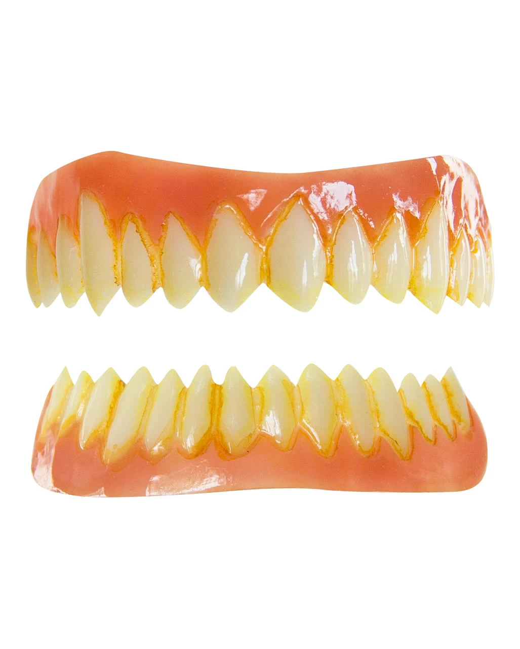 Mit den Dental FX Veneers Monster Zähnen in hochwertiger Filmstudio Qualität kannst du dir das Gebiss einer schrecklichen Bestie oder eines blutdürstigen Werwolfs zulegen. Die ultraflachen Zahnblenden sind das perfekte Kostümzubehör für Halloween & Horror Partys.
