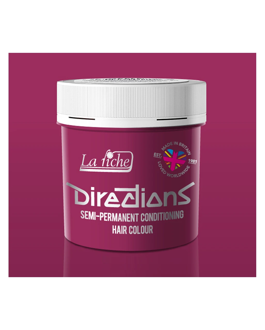 Zunächst muss das Haar blondiert werden, um eine strahlende Farbe zu bekommen. In den Tönungen ist kein Peroxid enthalten somit hellen sie auch nicht die Haare auf. Auch bei naturblondem Haar ist eine Blondierung zu empfehlen, da dadurch die Haarstruktur aufgeraut wird und die Farbe besser aufgenommen werden kann. Warte am besten ein paar Tage und Haarwäschen, bevor du die Haare färbst, damit auch die letzten Reste der Blondierung ausgewaschen sind. Einmalhandschuhe und einen Haarfärbepinsel sind zu empfehlen, außerdem feuchte die Haare ein wenig an und lasse sie für ca. 10 Minuten im Handtuch trocknen. Anschließend Strähne für Strähne von jeder Seite mit Farbe einstreichen, bis alles gut und dick bedeckt ist und für wenigstens 30 Minuten einwirken lassen. Hitze verbessert das Ergebnis, z.B. mit einem Fön oder eine Plastikhaube. Anschließend ein paar Minuten gründlich mit klarem Wasser ausspülen. Die Cerise Tönung ist ein Direktzieher und wird in einem kleinen Töpfchen mit abschraubbaren Deckel geliefert. Als Farbschutz empfehlen wir den Directions Farbschutz Conditioner, den du mit dem Farbschutz Shampoo kombinieren kannst.