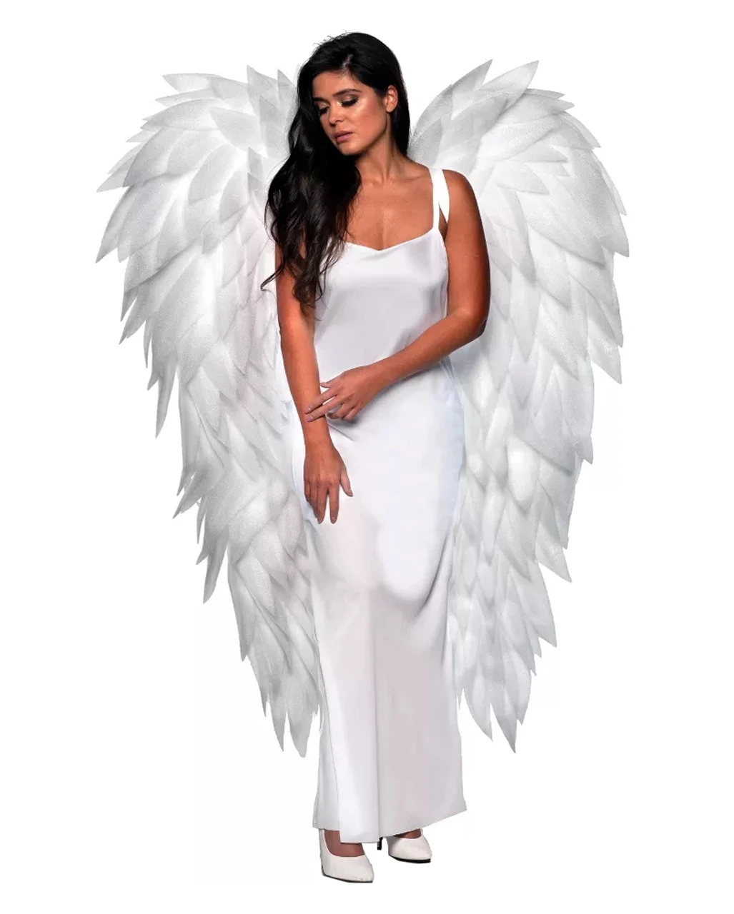 Bodenlange weiße Fantasy-Flügel als einzigartiges Kostümaccessoire