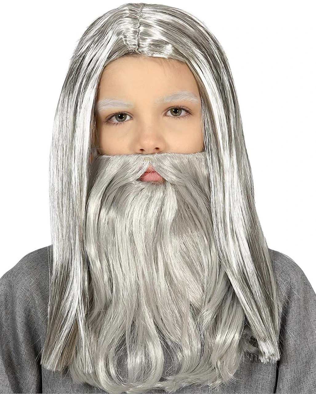 Lieferumfang: 1 x Graue Perücke mit Bart für Kinder