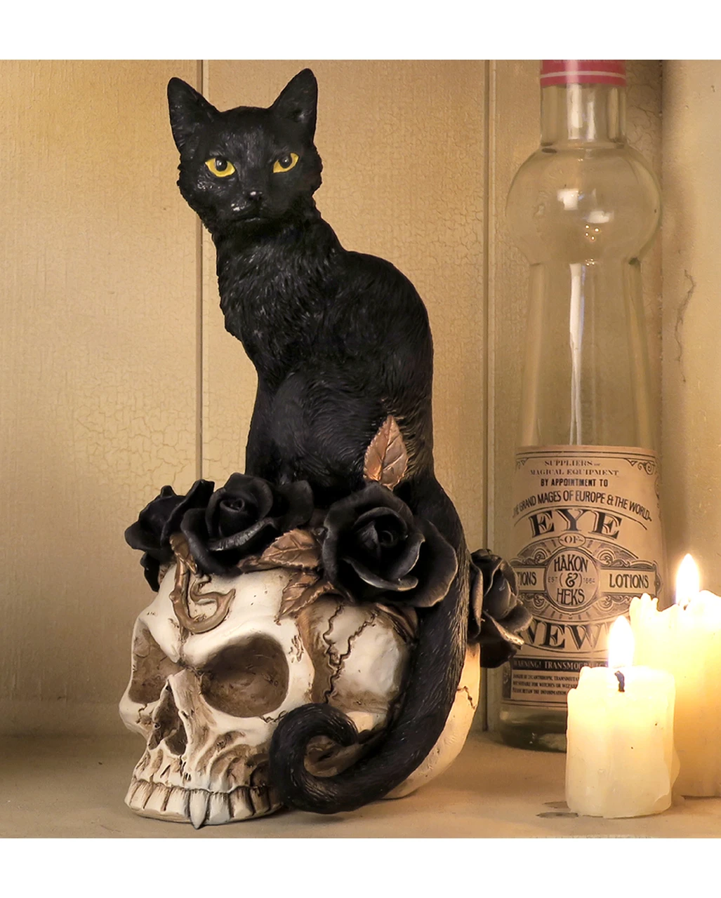 - Detaillierter Katze mit Totenschädel & schwarzen Rosen als Wohnungsdeko