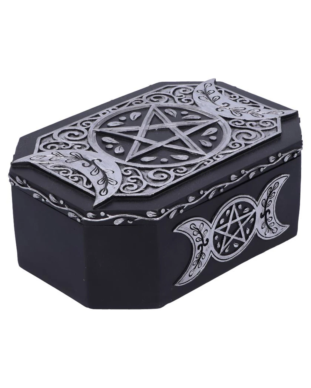 Okkultes Schmuckkästchen mit Dreifach Mond & Pentagramm als Verzierung