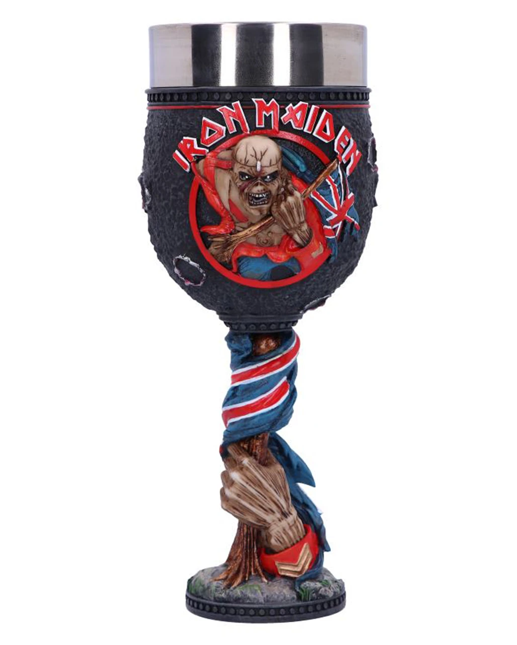 Das aus hochwertigem Kunststein gegossene Iron Maiden Trinkgefäß wird mit einem herausnehmbaren Edelstahleinsatz geliefert, damit du weniger Zeit mit dem Putzen und mehr mit dem Rocken verbringen kannst! Der Metal Kelch ist ca. 19,5 cm hoch und ein super stylisches Zubehör für deine Küche! Entdecke auch den Iron Maiden „Trooper“ Bierkrug passend dazu.