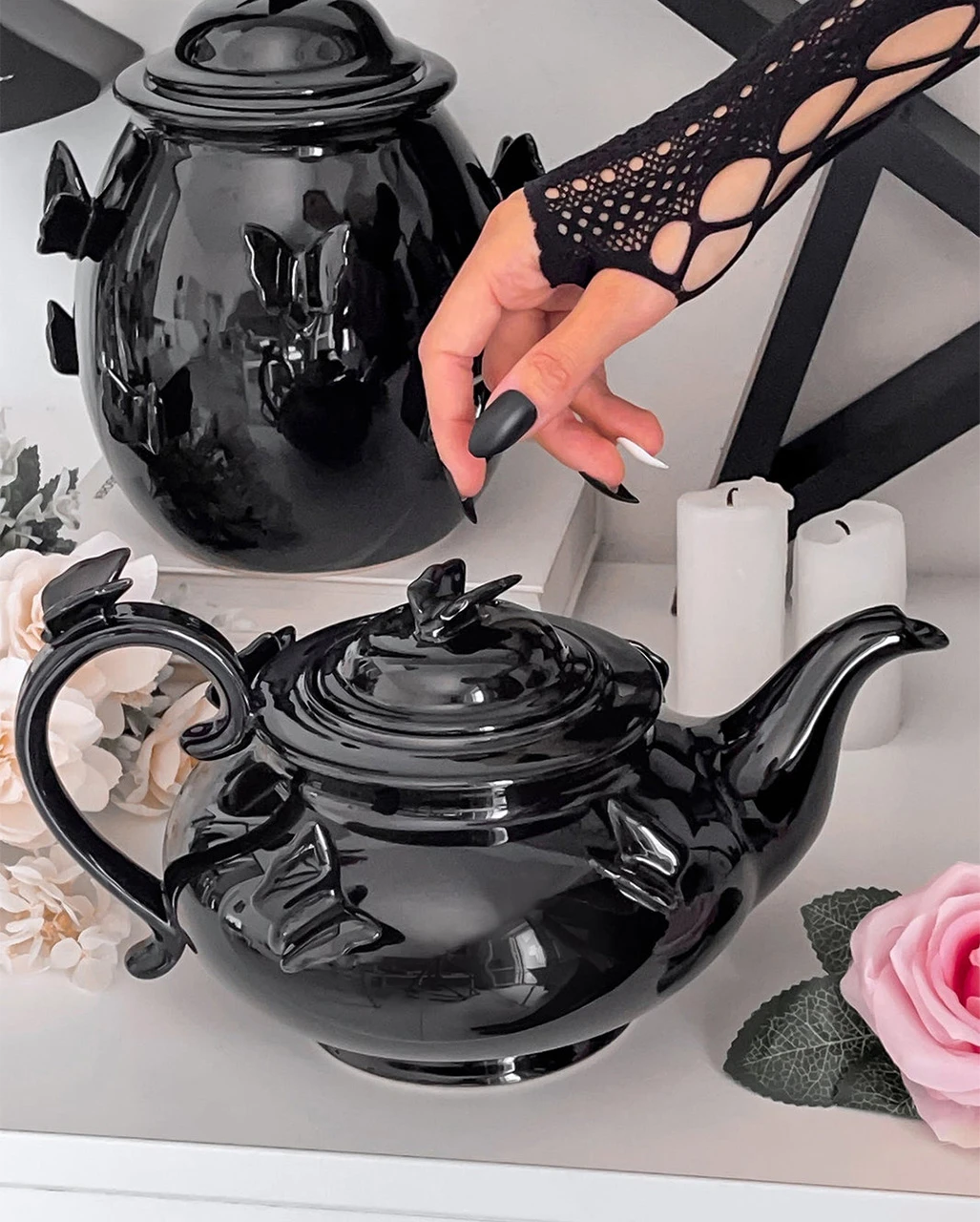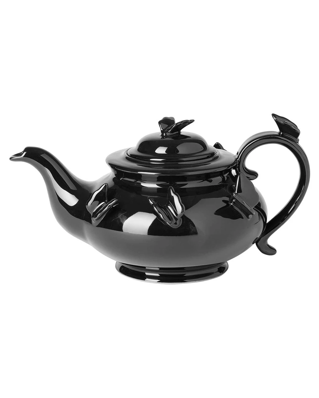 Gibt es etwas Schöneres, als bei einer Tasse Tee und einem Stück Kuchen den neuesten Klatsch und Tratsch zu horchen? Mit unserer KILLSTAR Darkspell Teekanne wird deine Gothic Teestunde perfekt: Die schwarze Teekanne komplettiert dein düsteres Teeservice und ist optisch ein echter Hingucker! Viele kleine Schmetterlinge tummeln sich auf der Kanne – ein dekoratives Highlight für die nächste Teeparty!