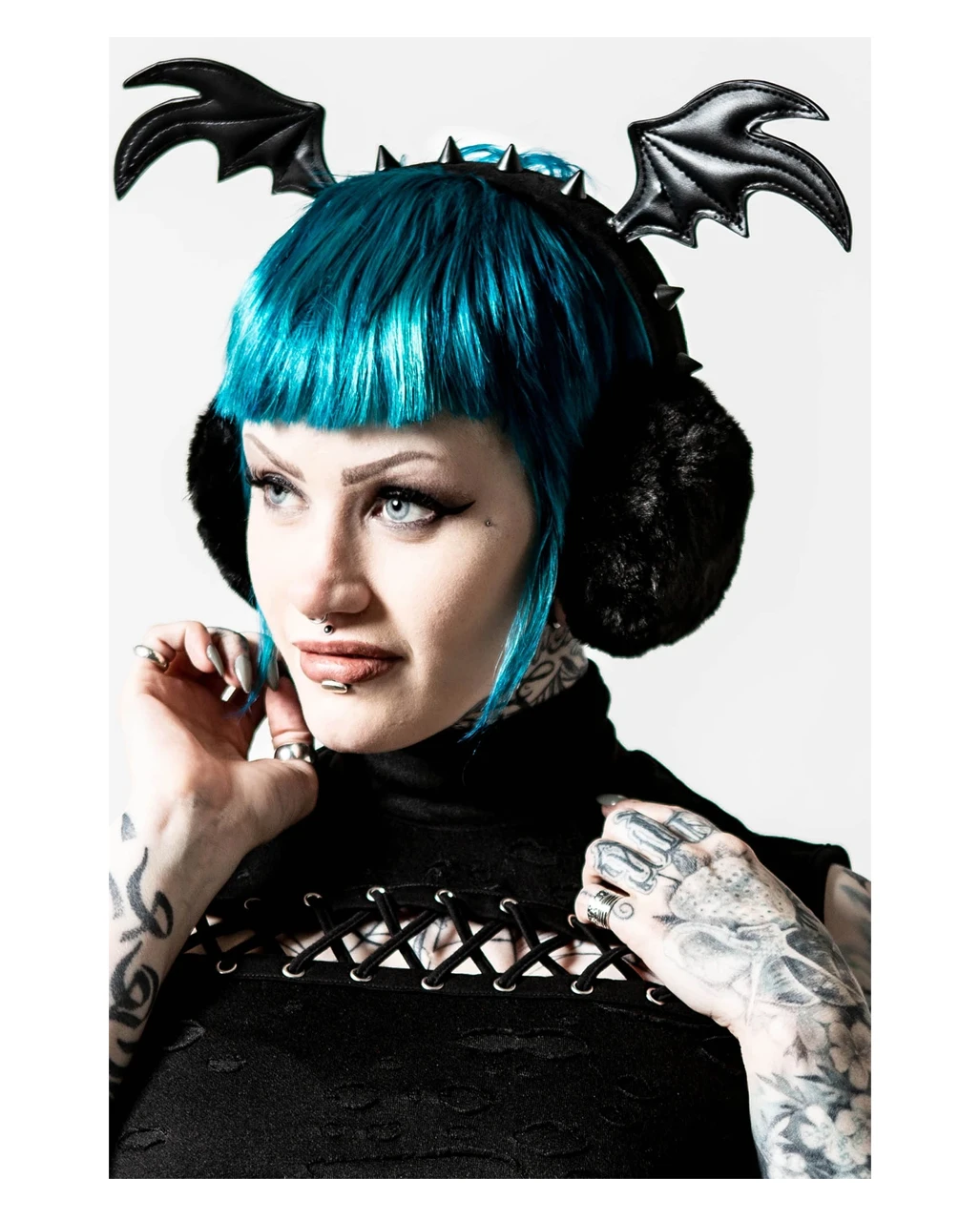 Unsere Gothic Ohrwärmer bestehen aus Plüsch und verfügen über zwei Kunstleder Flügel. Sie werden ganz klassisch als Haarreif getragen und wärmen deine Ohren an kühlen Tagen. Ohrenschützer eignen sich immer dann, wenn du keine Mütze oder Kapuze tragen willst. Der kuschelige KILLSTAR „Just Wing It“ Ohrschützer passt zu jedem Outfit und sorgt für Aufsehen! Trage den Strickschal mit Fledermaus Motiv & Fransen am besten gleich dazu!