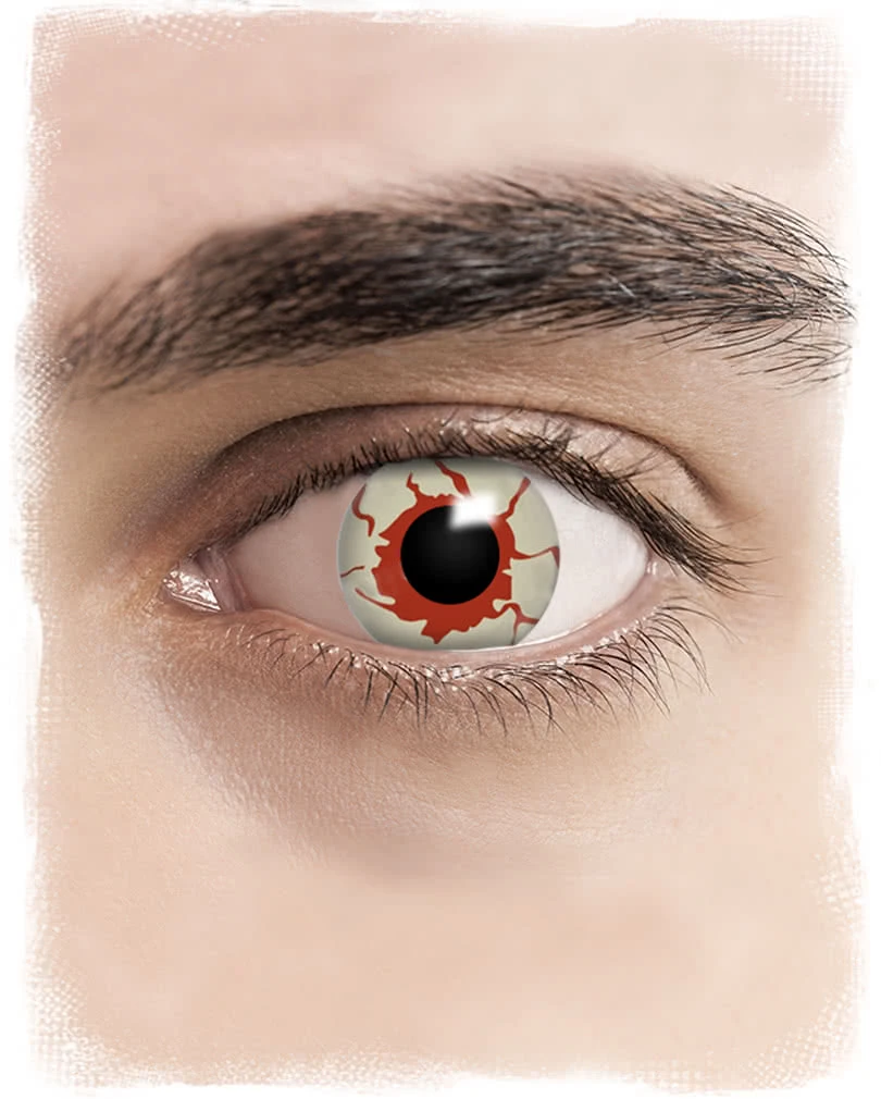 Wenn im Auge die Äderchen platzen, ist meistens eine schmerzhafte Erfahrung vorausgegangen. Ansonsten ist der Look auch Merkmal untoter Zeitgenossen. Mit den gruseligen Kontaktlinsen Blut Motiv kannst auch du an Halloween als blutunterlaufende Horror-Gestalt dein Unwesen treiben.