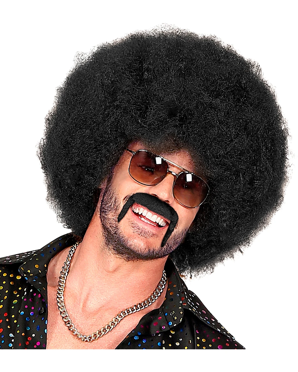Was wäre eine 70er Jahre Motto Party, Bad Taste Fete oder Halloween und Karneval Veranstaltungen ohne den Vollproleten mit Rapper Goldkette und Armband und Rotzbremse. Der Macker Bart Economy schwarz ist der Partyhit des schlechten Geschmacks. Damit stellst du den ständig labernden Killer Jules aus dem Kultfilm Pulp Fiction perfekt dar.