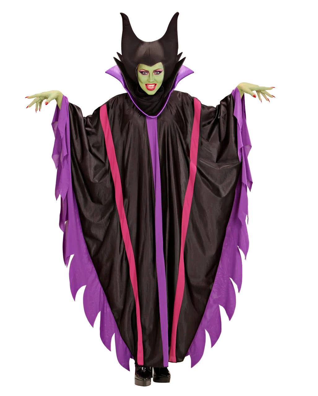 Das Malefizia Kostüm besteht aus einem bodenlangen Gewand mit Stehkragen und klassischer Kopfbedeckung mit Hörnern. Das böse Fee Kostüm hat sowohl die Schnitte, als auch die typischen, schwarzen und lila Farben des bekannten Malefiz Outfits bewahrt. Perfektioniere dein Auftritt noch mit einem einen Roter Lippenstift und Glitter Nagellack rot und Schneewittchen sollte sich dann besser vor dir verstecken.