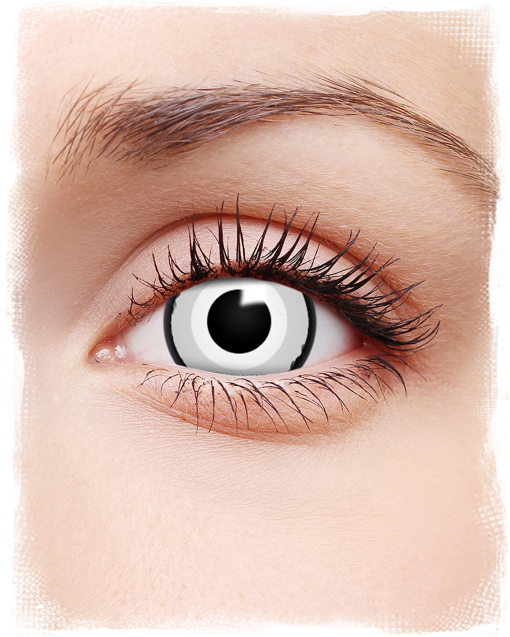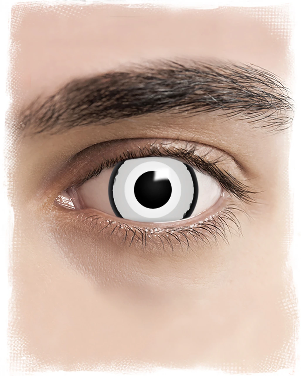 Mini-Sclera Kontaktlinsen in schwarz weiß sind der absolute Renner für dein Halloween Make-Up. Die Effektlinsen sind etwas größer als übliche Linsen und vergrößern dadurch deine Iris. Die Zombie Mini-Sclera Linsen verwandeln dich im Handumdrehen in einen infizierten Zombie, mit totenblassen Augen.