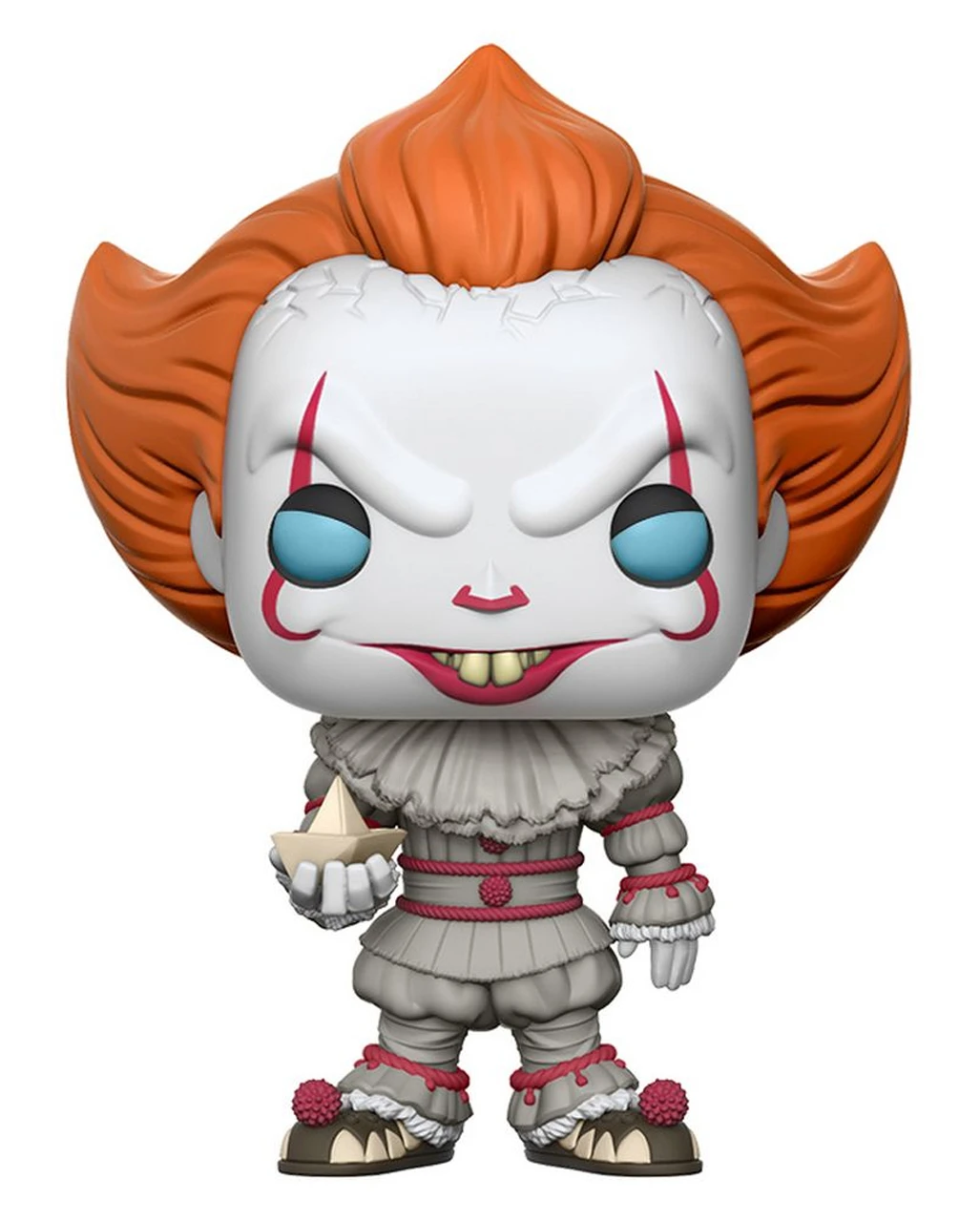 Time to float! Mit der Pennywise ES Funko Pop! Figur hast du ein weiteres Prachtexemplar für deine Kollektion gefunden. Die ES Sammelfigur aus Vinyl kommt aus dem Hause Funko Pop! – bekannt für seine äußerst beliebten Fan-Figuren aus Fernsehen & Kino. Nun bekommst du mit der IT Figur ein weiteres Familienmitglied direkt zu dir nachhause. Der kleine Pennywise kommt – wie sollte es auch anders sein – im Clown-Kostüm. In der Hand hält er das Papierboot, mit welchem der kleine Georgie eben noch gespielt hat, bevor Pennywise ihn in die Kanalisation gelockt hat. Huldige dem Kinder fressenden Clown aus der erfolgreichen Neuverfilmung mit Bill Skarsgård und bestelle die düster-süße Pennywise ES Funko Pop! Figur.