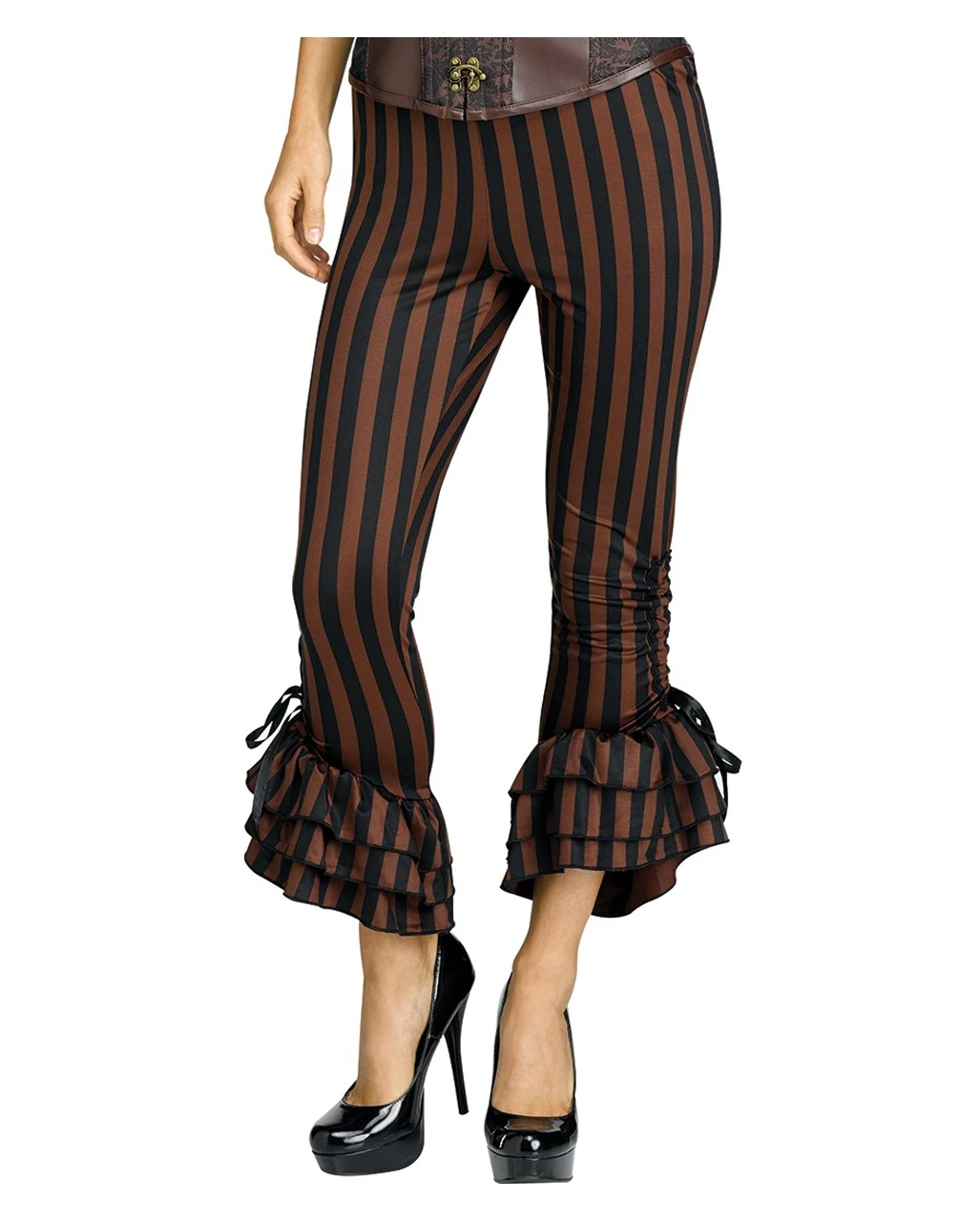 Nutze unsere Piratin Kostümhose in Schwarz und Braun als sexy Accessoire für unterschiedliche Verkleidungen. Durch ihre Farbe und ihr Design kannst du die schwarz-braun-gestreifte Halloween-Hose wunderbar mit Seeräuber und Steampunk Verkleidungen auf den anstehenden Halloween Feiern und Mottopartys kombinieren!
