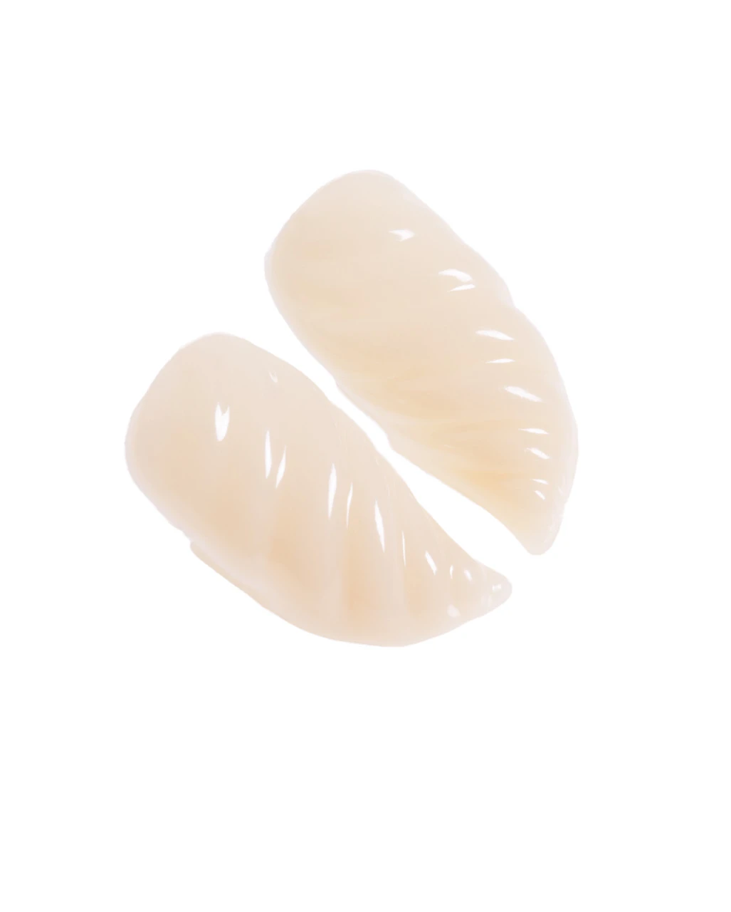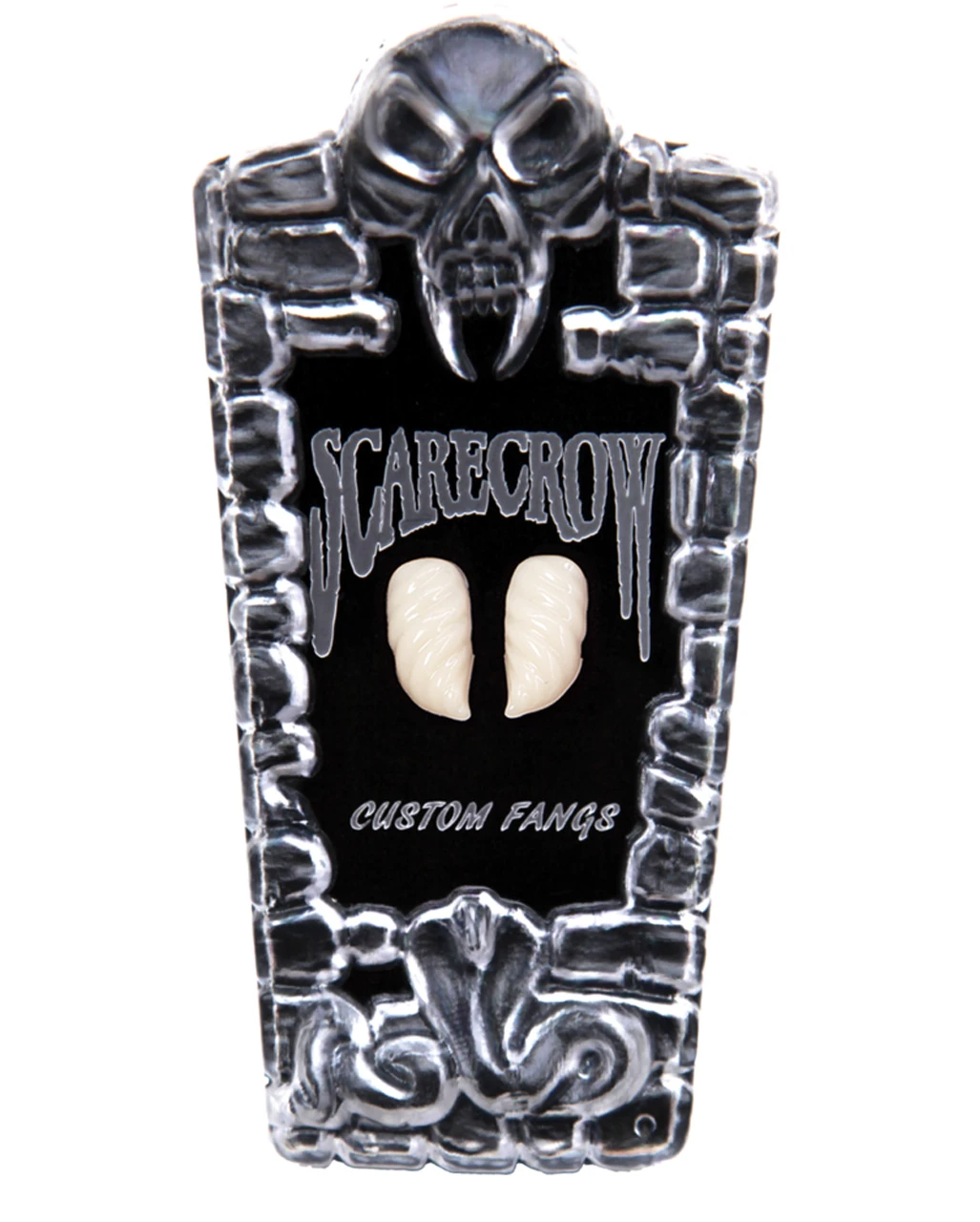 Unsere Scarecrow Spiral Vampir Eckzähne sind so designt, dass sie dem Aussehen von natürlicher Schale und Knochen nachempfunden sind. Sie sind an Eck- und/oder Schneidezähnen tragbar, können aber auch an den unteren Zähnen getragen. Die Vampirzähne sind schnell, einfach und bequem einzusetzen und sehen absolut realistisch aus. Die naturfarbenen Fangzähne sind als Veneers glänzend, starr und schön geformt und sehen in jedem Mund toll aus.