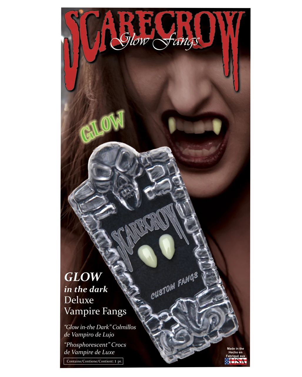 Die Scarecrow Vampirzähne haben ein US-Patent und sind mit die besten Vampirzähne, die auf dem Markt erhältlich sind. Die im dunklen leuchtenden Vampir Eckzähne sind etwas kleiner, als die regulären Vampire Fangs und werden gerade deshalb gerne getragen. Die Scarecrow Vampirzähne werden in Hollywood von den Schauspielern von Twilight, True Blood und Vampire Diaries benutzt und sind für den professionellen Einsatz ideal.