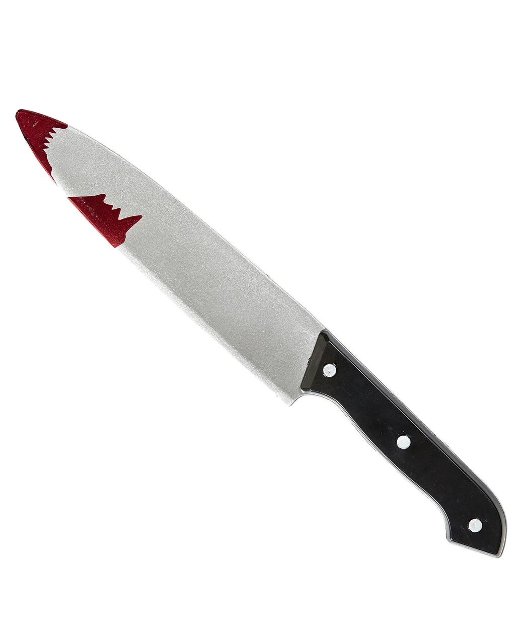 In fast jedem Horrorfilm spielen blutige Metzger Messer eine große Rolle. In den meisten Fällen greifen die Opfer auf ihr normales Küchenmesser zurück. Unser unscharfes Schlachtmesser mit Blutspritzer passt daher als Spielzeugwaffe genial zu allen Horror Kostümen wie auch zu Michael Myers & Scream Opfer Verkleidungen als Kostümzubehör.