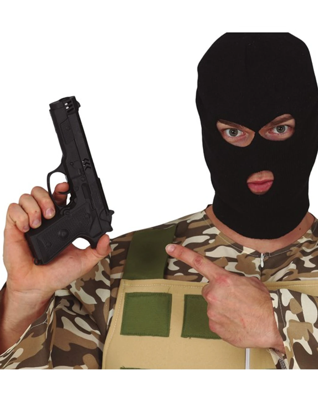 Ob als Polizist, Gangster oder auch als Bodyguard – unsere schwarze Pistole als Spielzeugwaffe eignet sich hervorragend als Kostüm Accessoire für Halloween und Mottopartys!