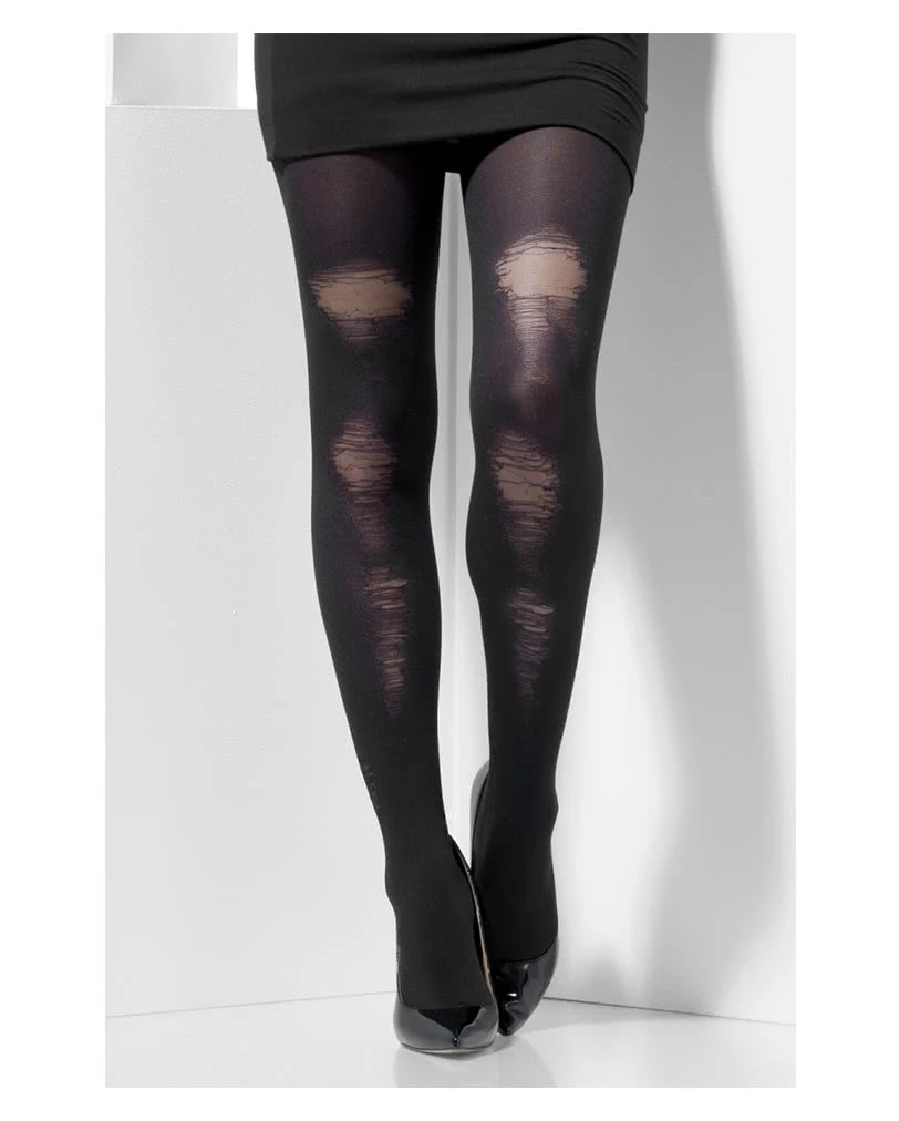 Zerfetzte Strümpfe, Schnürstiefel und Nieten sind ein MUSS für Punk Outfits & Kostüme. Die schwarze Strumpfhose in Loch Optik eignet sich auch besonders gut für düstere Gothic Events. Werde zur wilden Punker Göre & düsteren Gothic Braut mit der schwarzen Feinstrumpfhose!