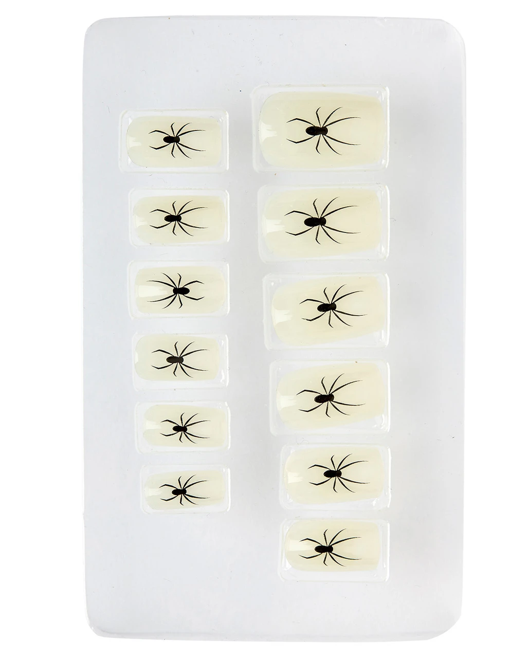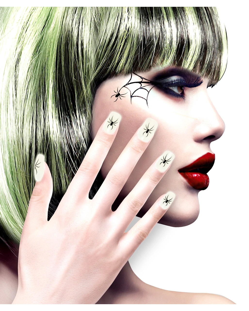 Künstliche, selbstklebende Fingernägel mit Spinnenmotiv, die im Dunkeln leuchten
