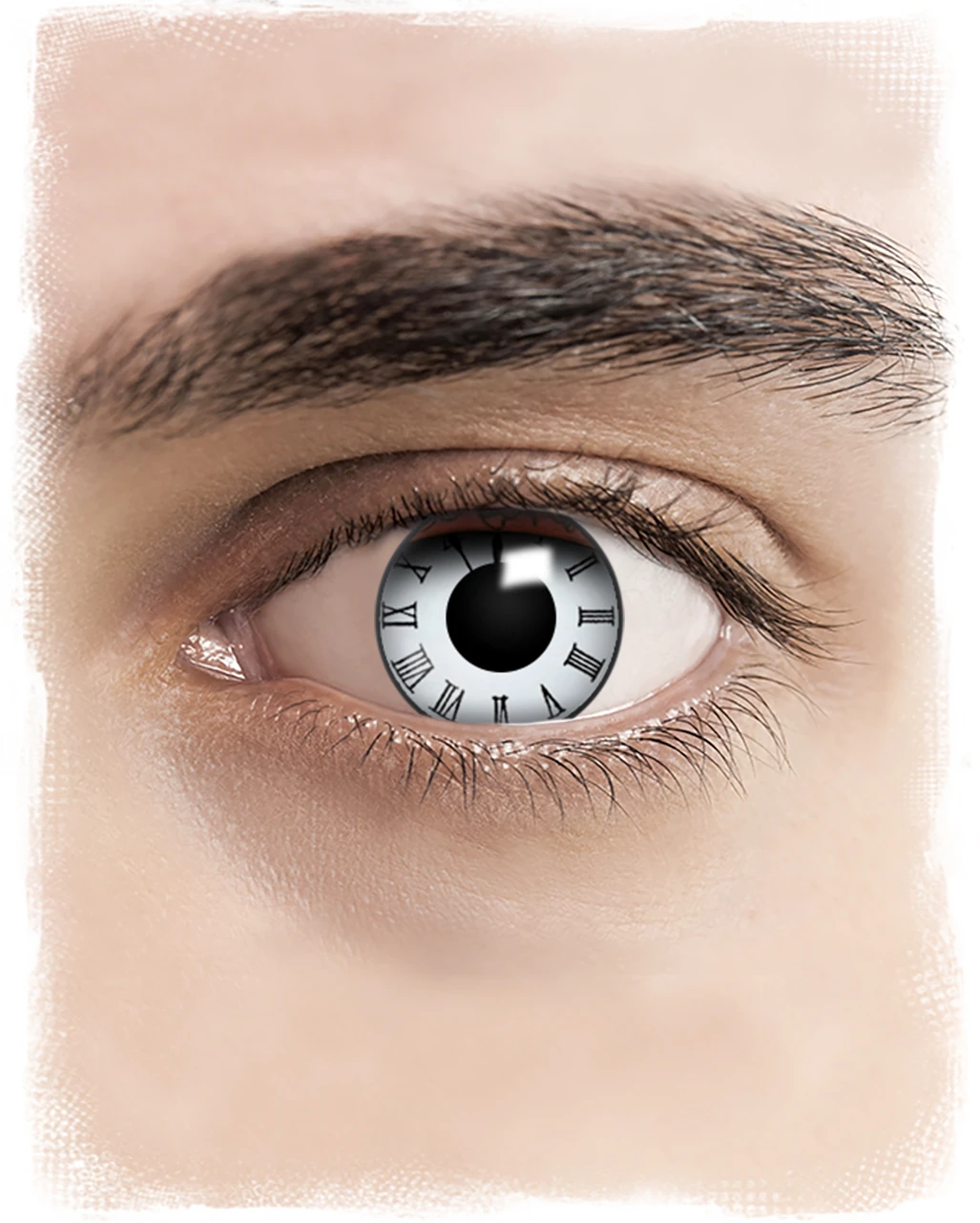 Weiße Tick Tock Clock Kontaktlinsen für dein Alice & Fantasy Make-Up