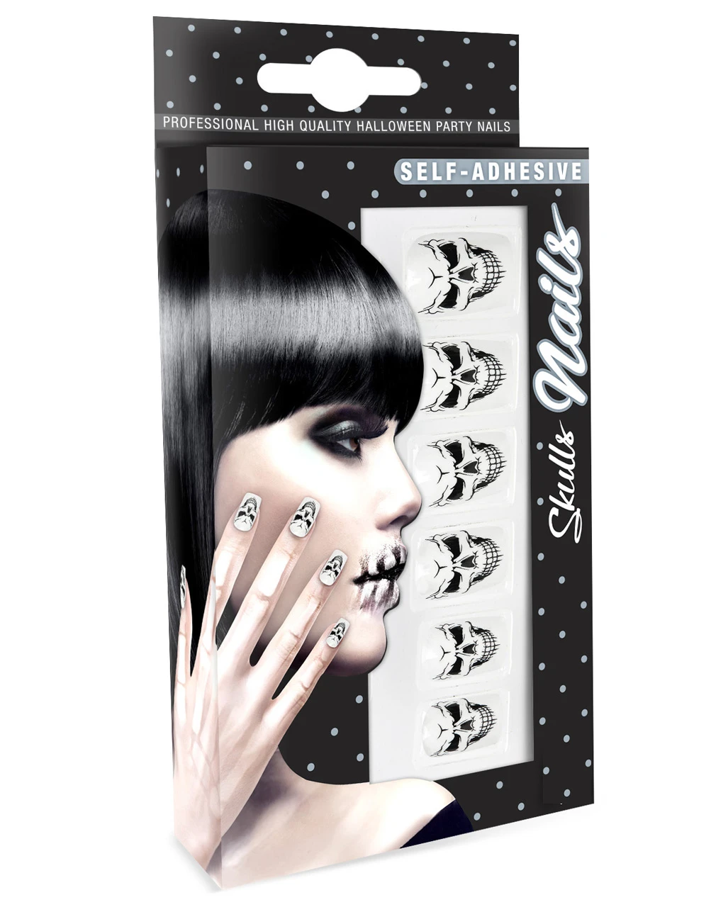 Selbstklebende, schwarz-weiße Fingernägel mit Totenschädel als Motiv
