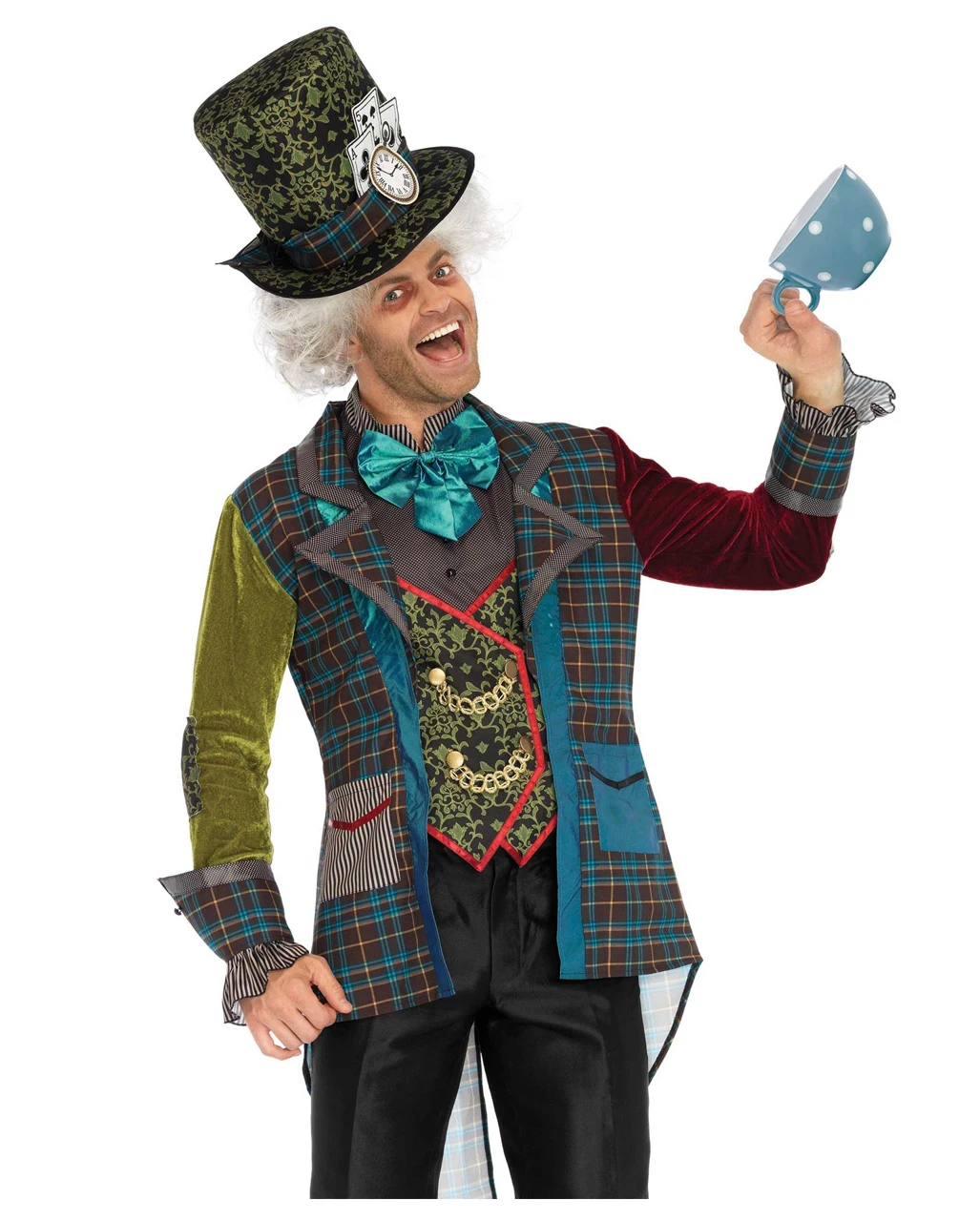 Der verrückte Hutmacher ist eine groteske Märchenfigur, die in vielen Filmen und Adaptionen auftaucht und meist bizarre Fantasiewelten verkörpert. Die Schwelle zwischen Traum und Wirklichkeit ist sein Zuhause, was ihn zur perfekten Verkörperung fantastischer Welten macht. Verwandle auch du dich in den beliebten Charakter und trage das Verrückter Hutmacher Kostüm Deluxe zu Fasching & Mottoparty. Die Verkleidung besteht aus einem Verrückter Hutmacher Jacket als Kostümzubehör, einem Halstuch und natürlich dem extravaganten Hut.
